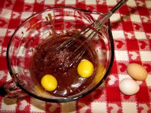 Microwave chocolate and butter in large microwaveable bowl on HIGH 1 min. or until butter is melted; whisk until chocolate is completely melted.