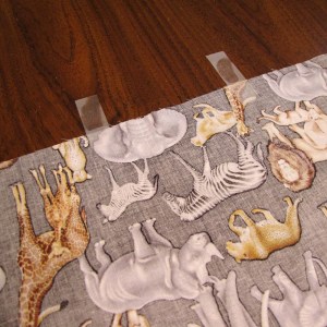 This particular quilt is shorter than my table on one edge. Therefore, I will secure it with tape. I like to use painters tape, but I’m improvising and using transparent tape since I don’t have any painters tape left (I’ve actually used it for painting trim and walls!).