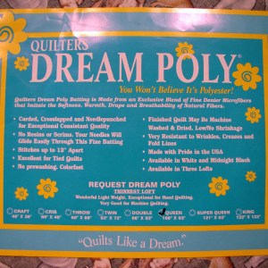 In this case, I am using a low-loft Dream Poly. The thicker the batting, the harder it is to machine quilt on a domestic machine, so ya might want to stick to low-lofts.