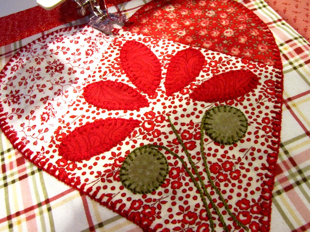 Leaves (in my case, hearts) with a spiral twist. Cute! They are more exciting to me; they dance! I do need to pay attention…there is one heart without a spiral in it (don’t strain your eyes…I didn’t capture it in the close-up).