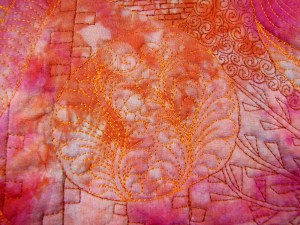 Cindy gave us so much useful information and lots of practice! I loved this month! Cindy suggested the ‘divide and conquer’ method. In other words, divide the work into sections and then fill in the sections. Instead of an entire blank canvas (or fat quarter, as in my case) to fill, I could simply concentrate on a section at a time. Baby steps.