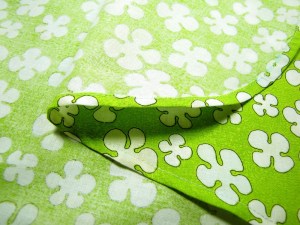 The other side of the wood has a layer of foam, followed by a layer of batting, followed by a layer of Insul-Bright and topped with a cotton polka dot print.