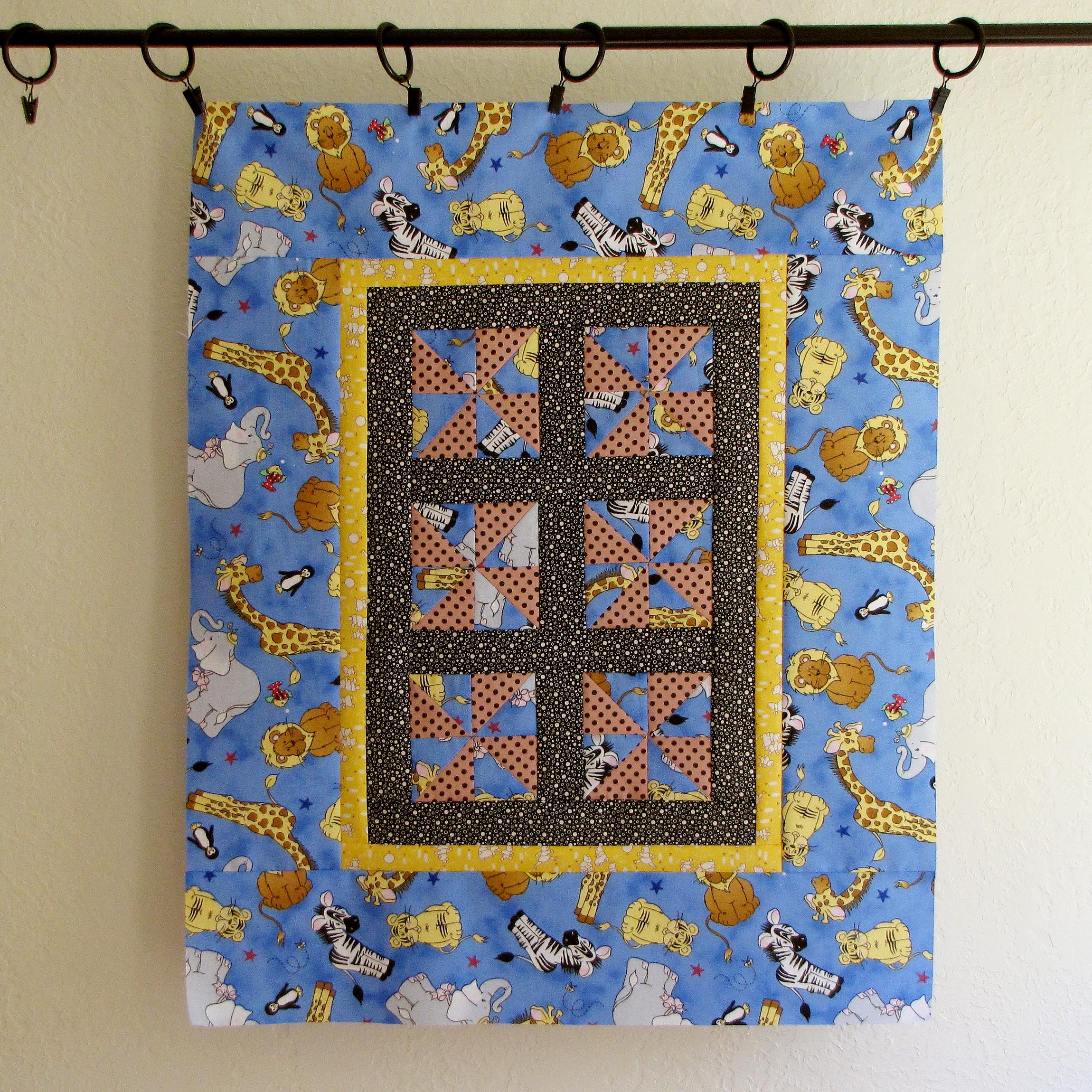 I like to start by seeing what the Four Knaves quilt block looks like set side by side in a simple straight set with borders.